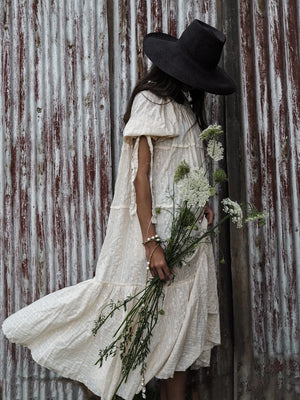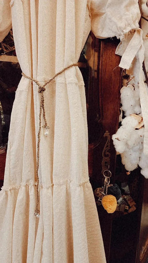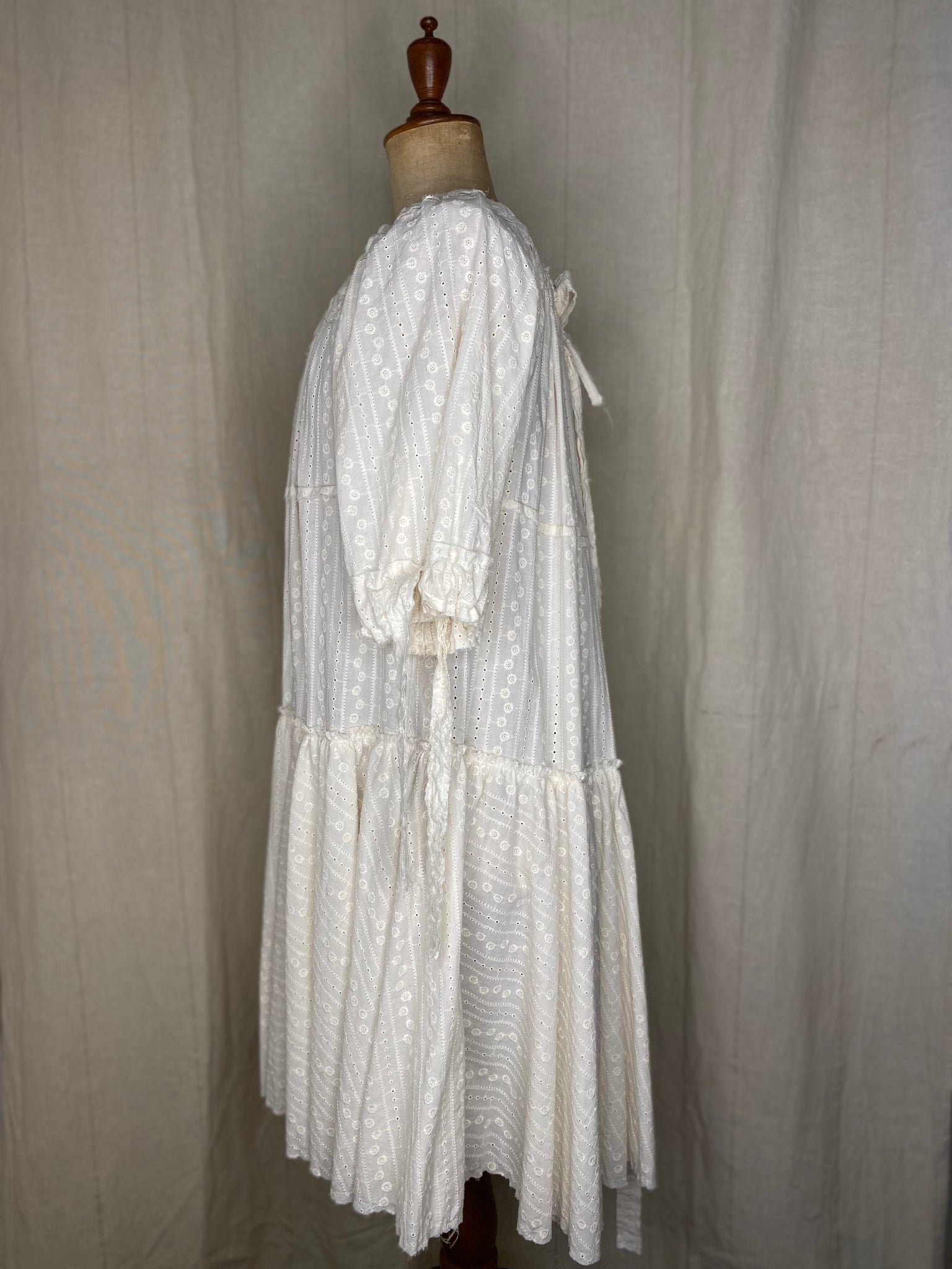The Amano volant dress has a tie around neckline; which can be adjusted in length to suit the wearer.
