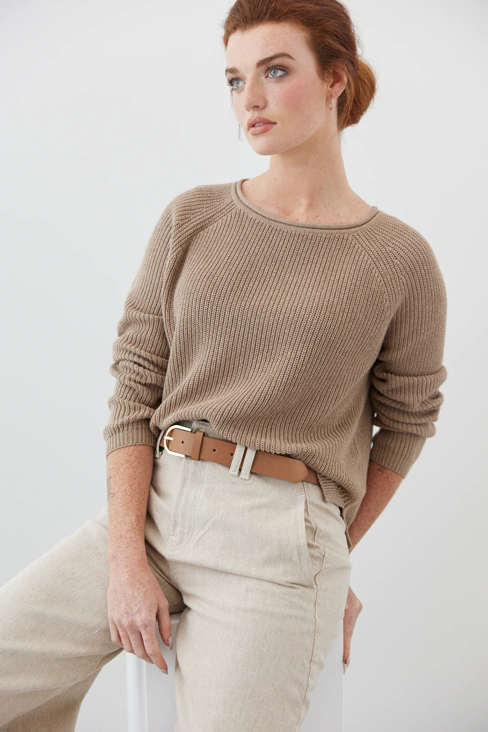 The Clementine Crew combines natural texture and timeless style. With a soft roll neckline, slim sleeves and a classic shape throughout the body, Clementine will be on heavy rotation