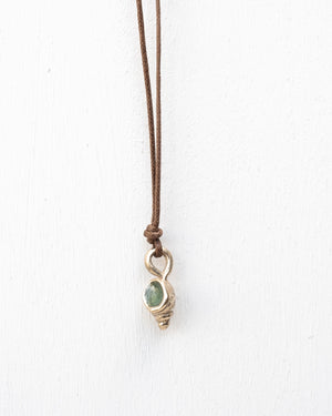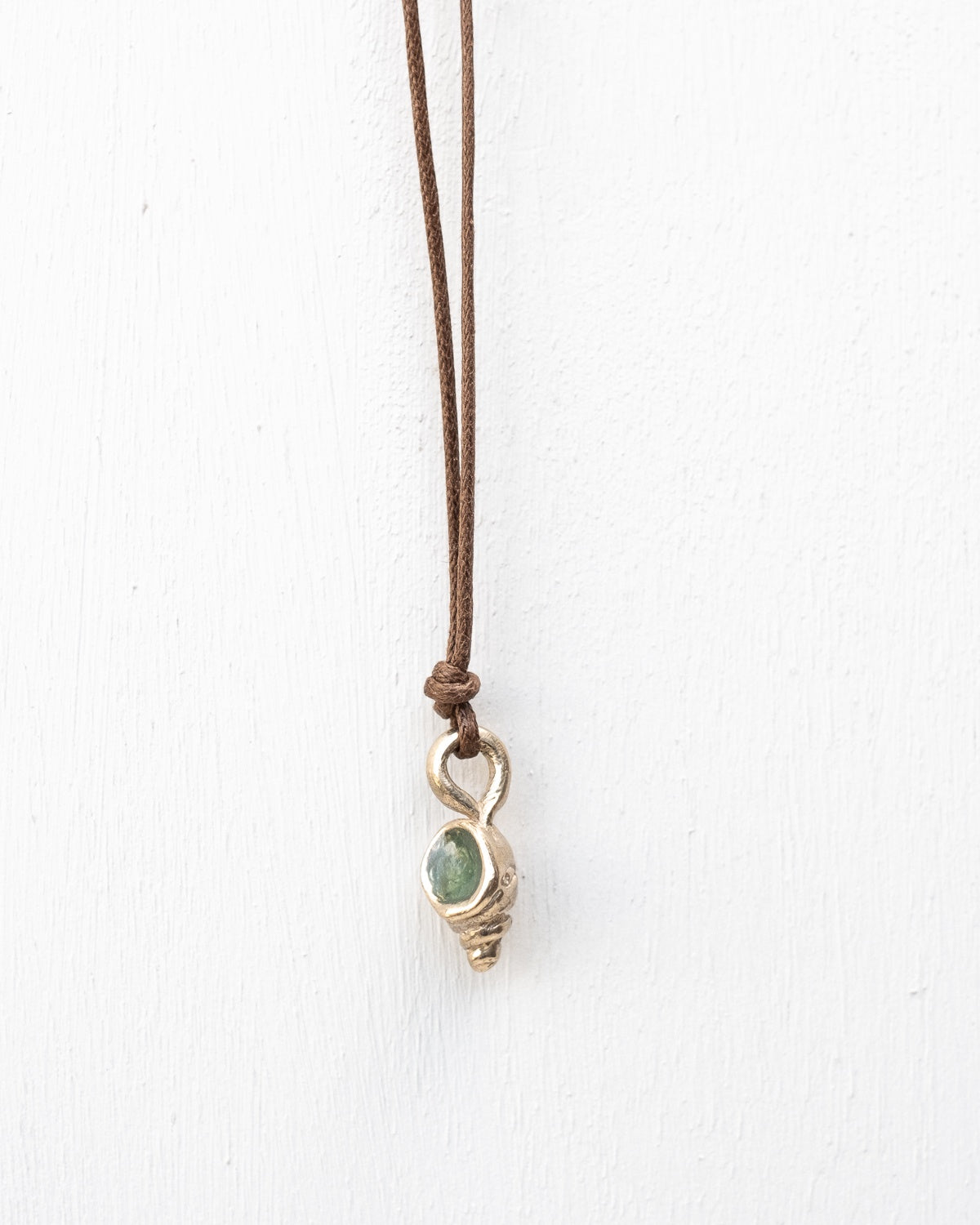 The Conchiglia 'shell' pendant, is made from handcast bronze on a waxed cotton cord.