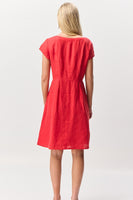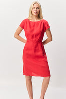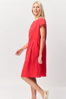 The Coral Sea Dress features round neckline, and short cap sleeves and a semi-fitted bodice
