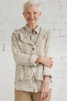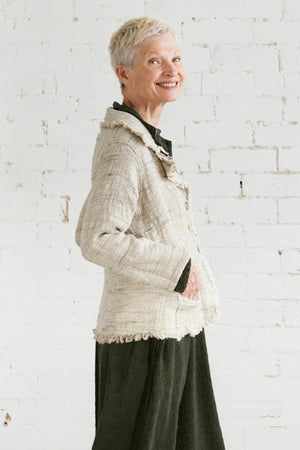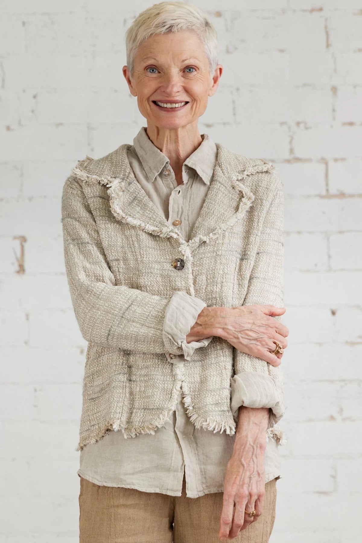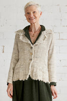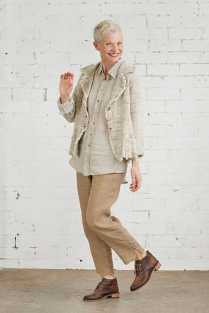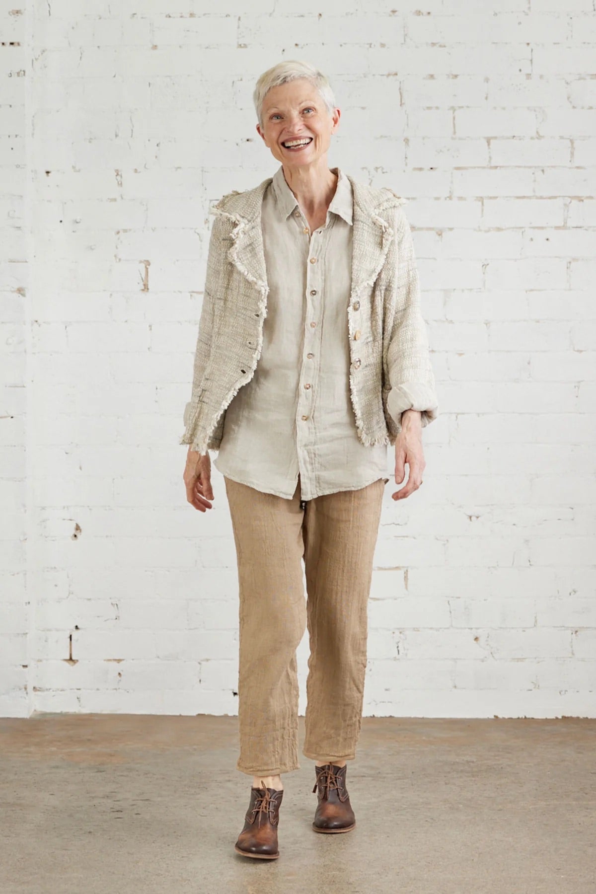 Hand wash or machine wash this garment on a gentle cycle using a mild detergent. Use a laundry mesh bag for extra protection. Do not crowd the washing machine as this can twist or pull the linen fabric out of shape. Avoid mixing or washing with items that have hooks, zippers or Velcro as they can pull or snag the fabric.