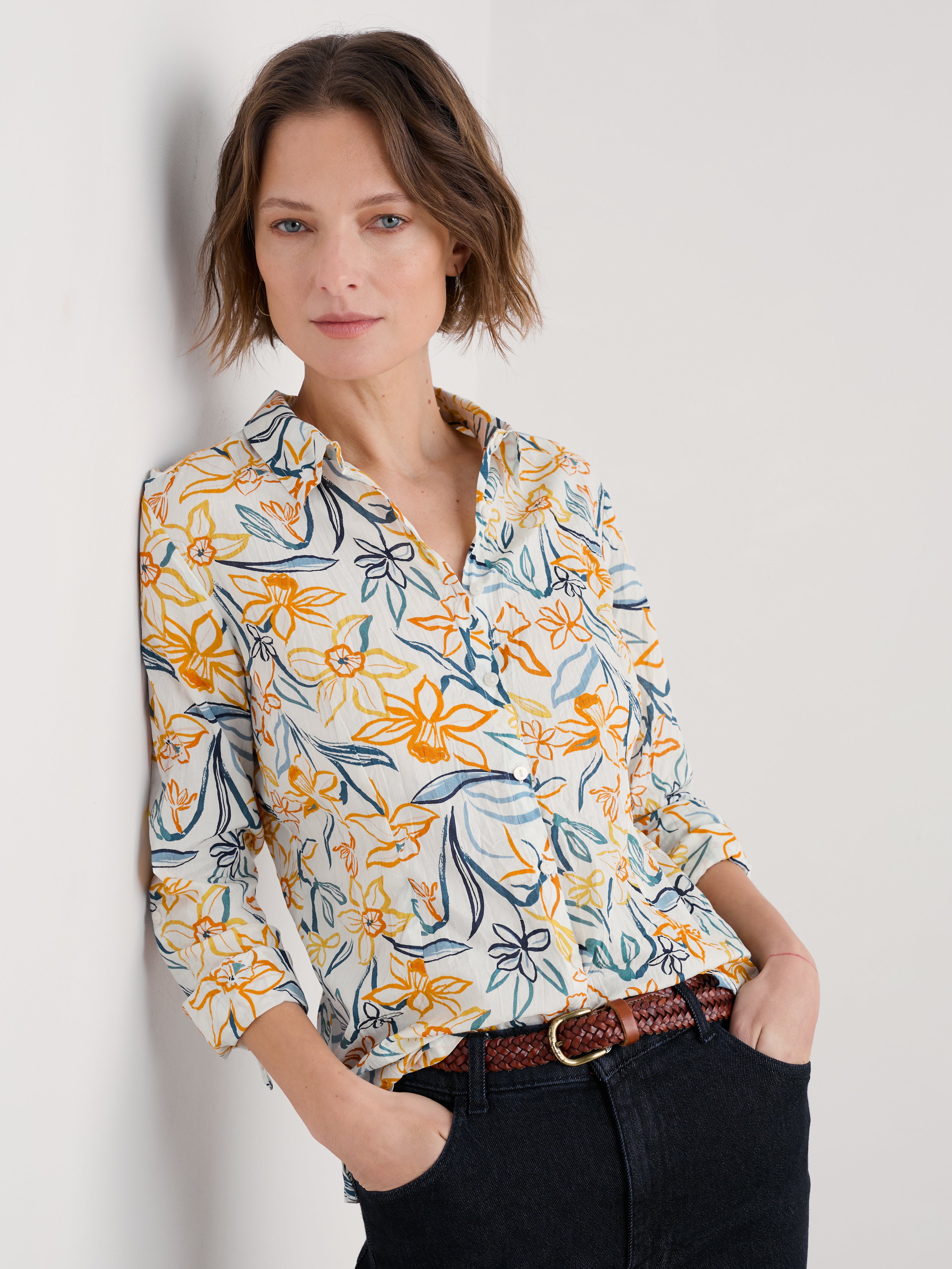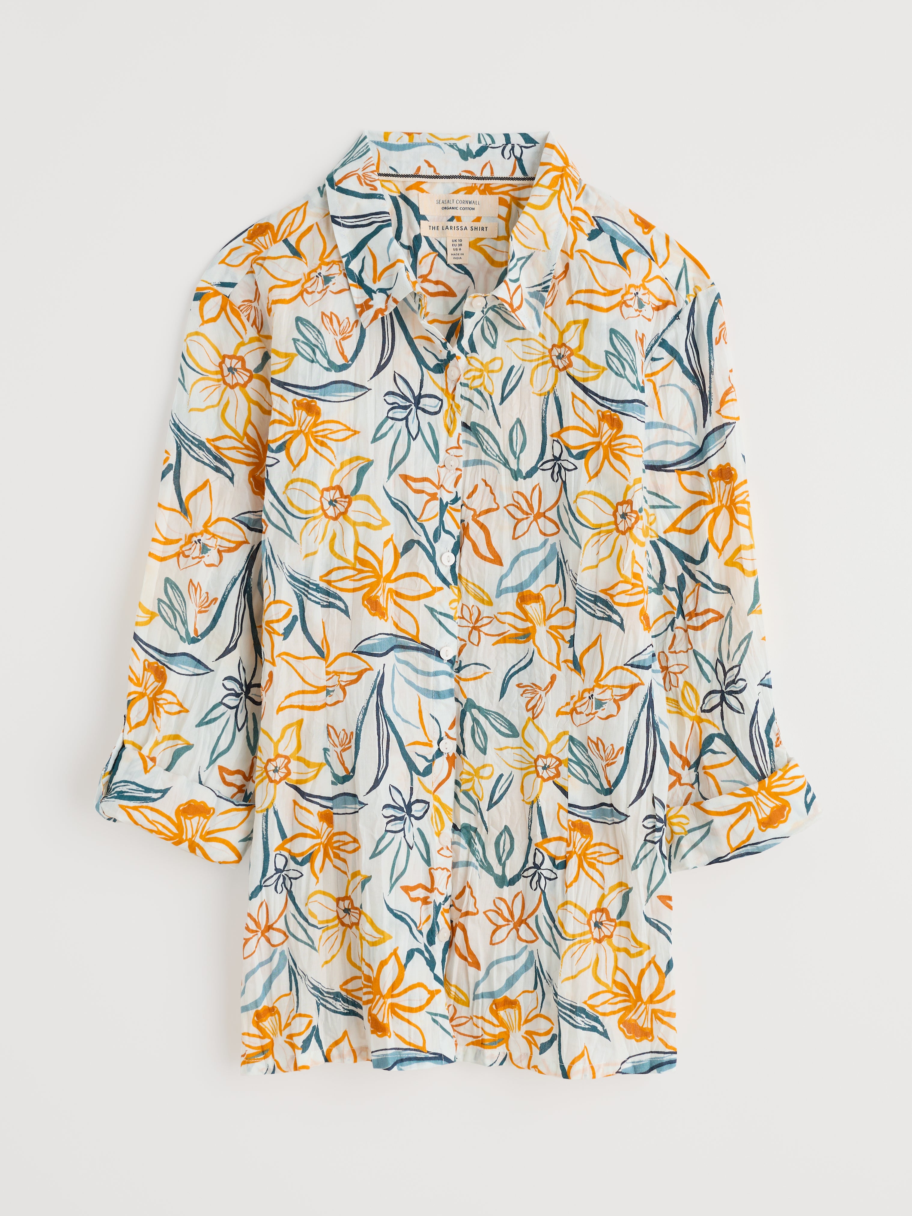 The Larissa Shirt is a year-round favourite. Made from the softest organic cotton with a casual crinkled appearance, the beauty of this shirt is that it doesn’t need ironing – just wash and twist to keep the crinkle. This semi-fitted style is easy-to-style and comfortable, with long sleeves and button loops so you can roll up the cuffs to change your look. Each season, it showcases some of Seasalt's most-loved prints, created by their talented textile designers.
