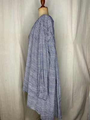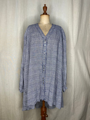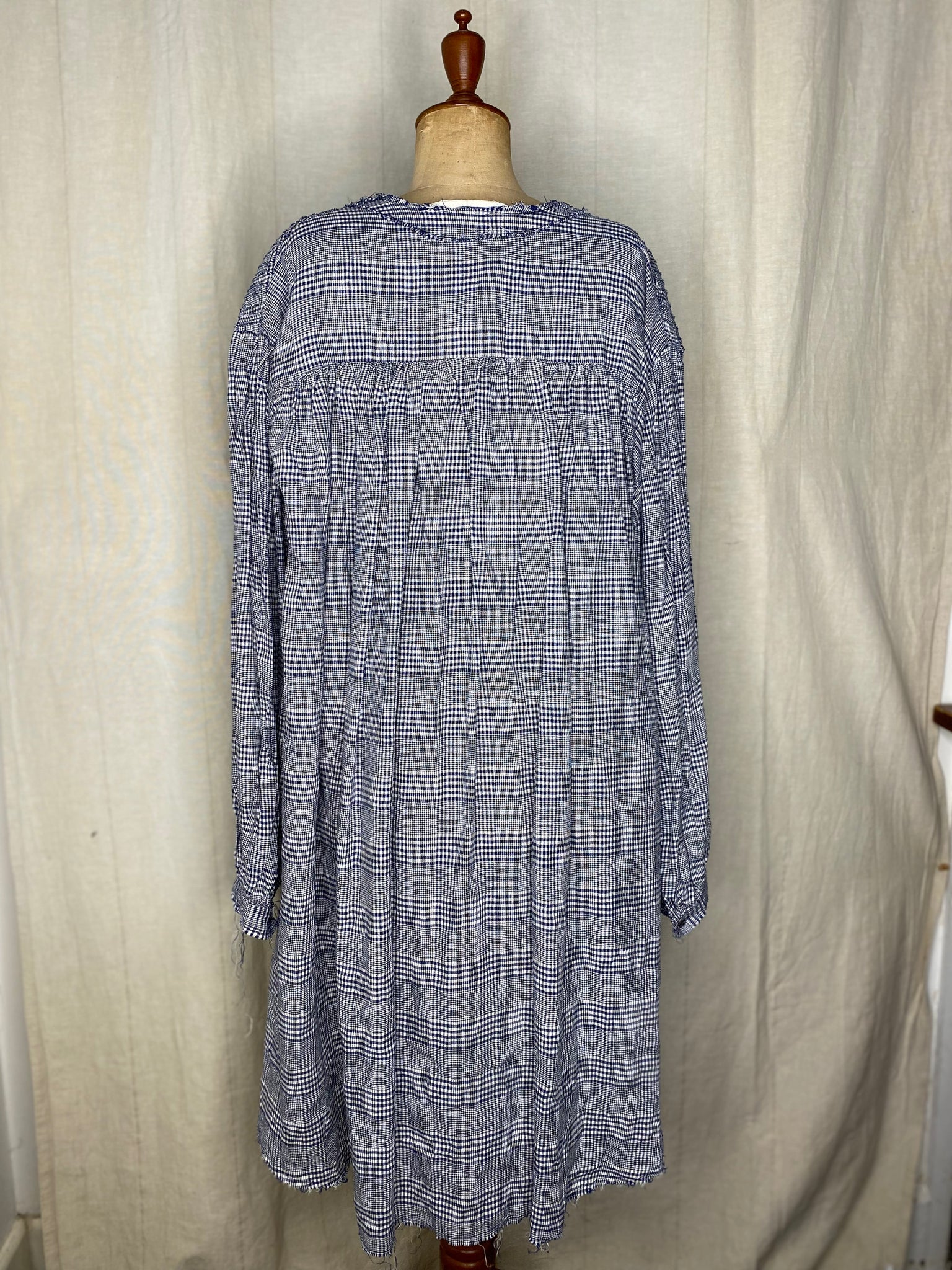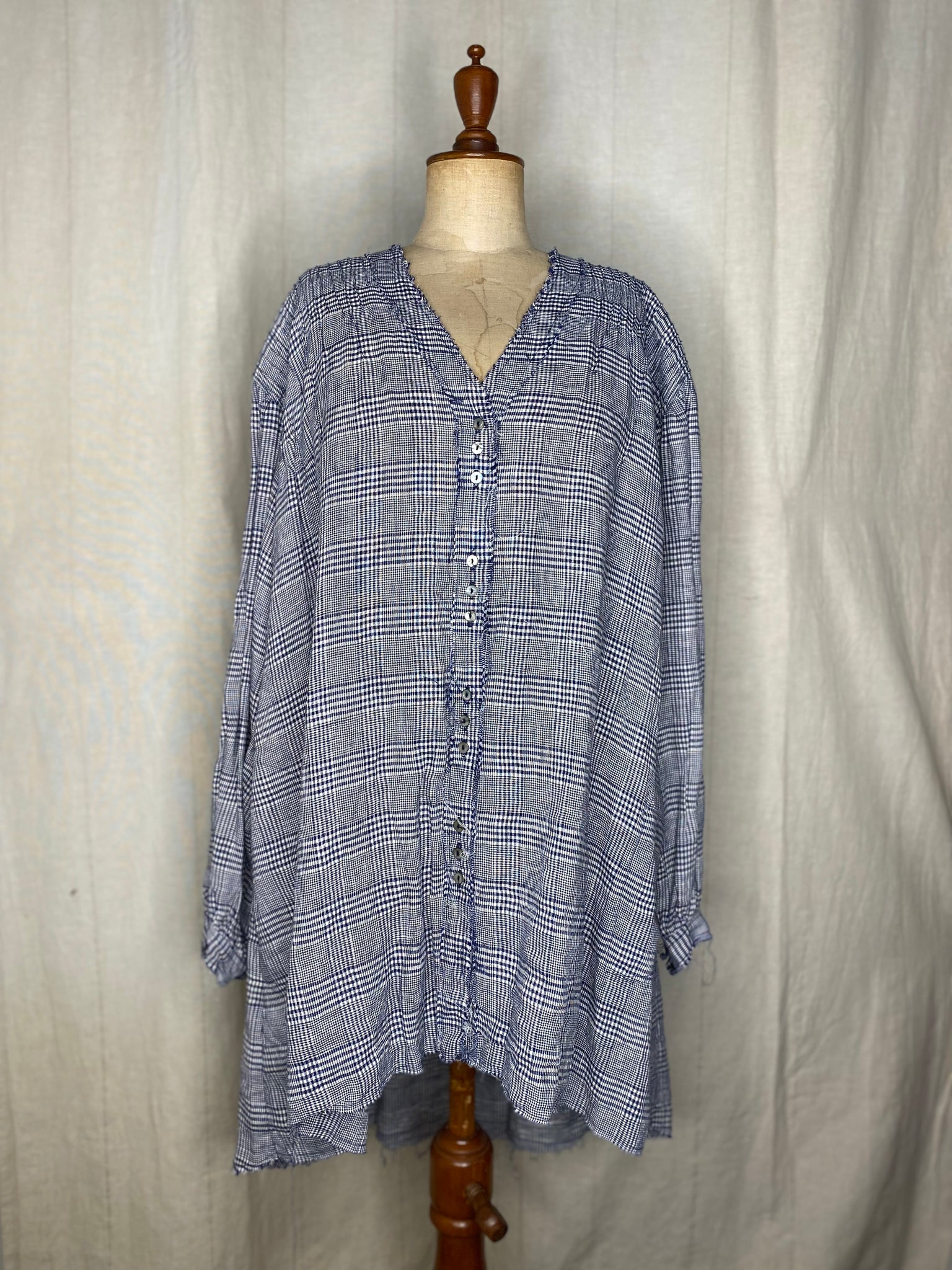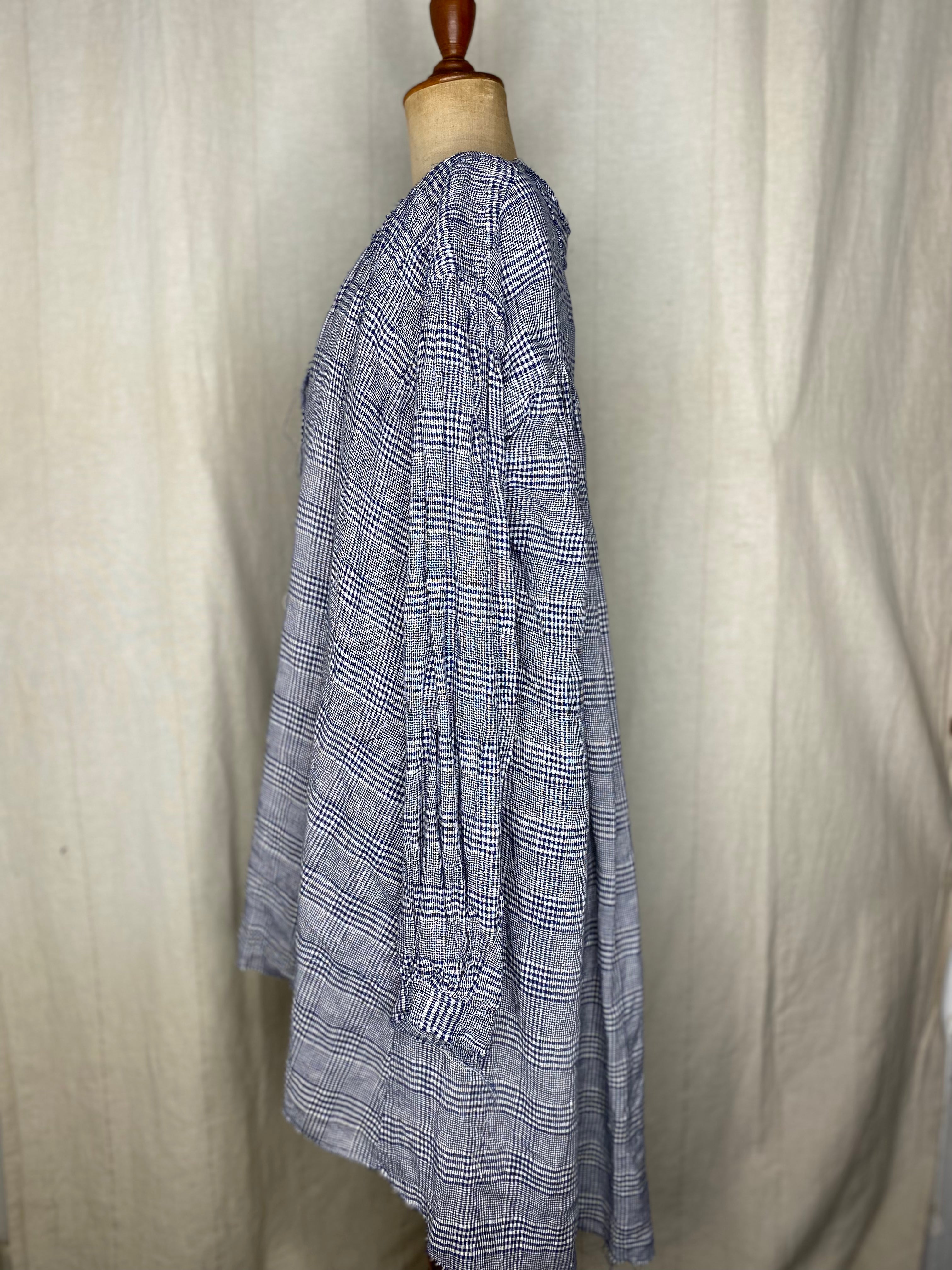 Amano pin tuck shirt with pockets and French seams, crafted in Melbourney from the finest quality linen checks in navy / white - fabric made in Japan.