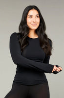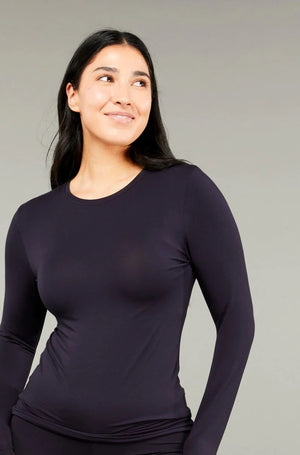Designed as a second skin, this top has a crew neckline and full length sleeve.