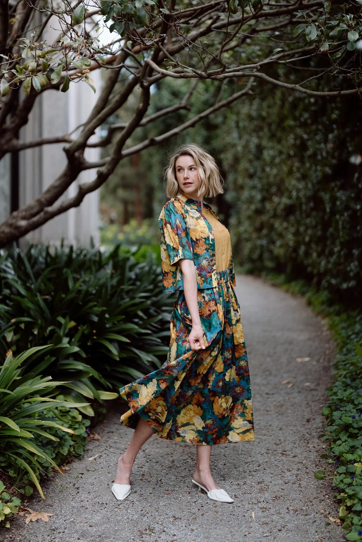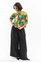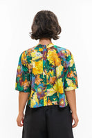 The Loretta Top is cut in our new-season hero print, Artist Bouquet, in pure Liberty cotton. A vivid interplay of saffron yellow, verdant green, and bold purple in a striking painterly floral.