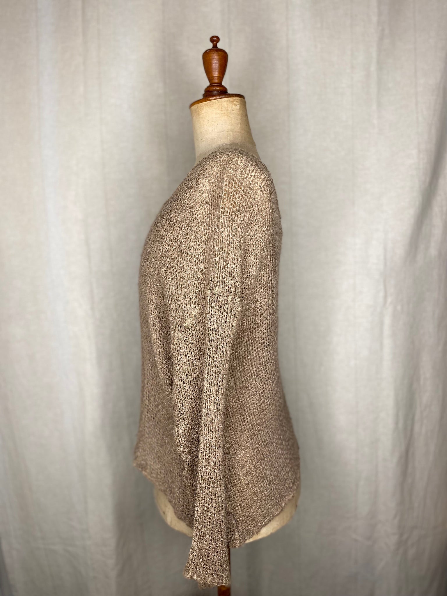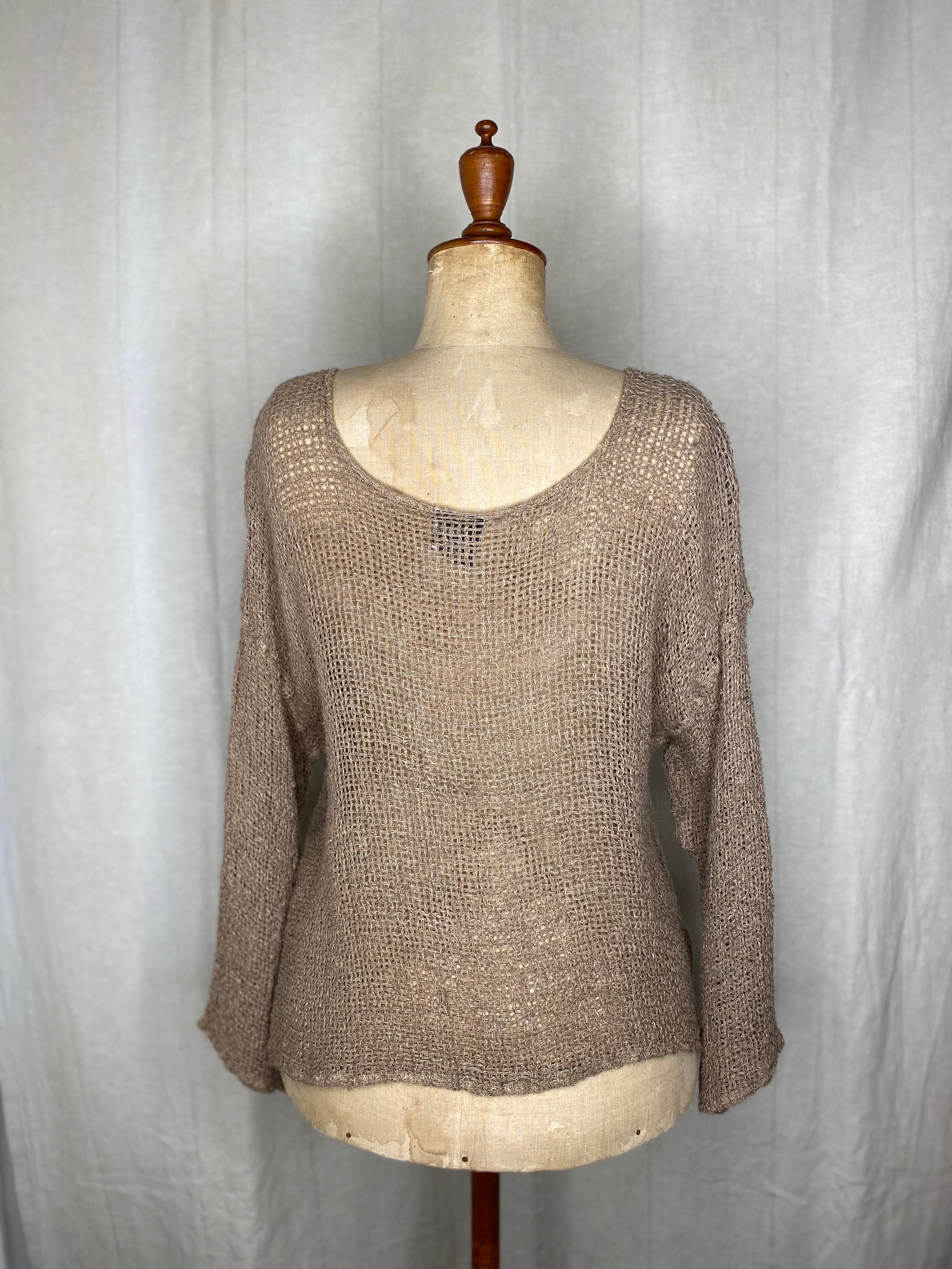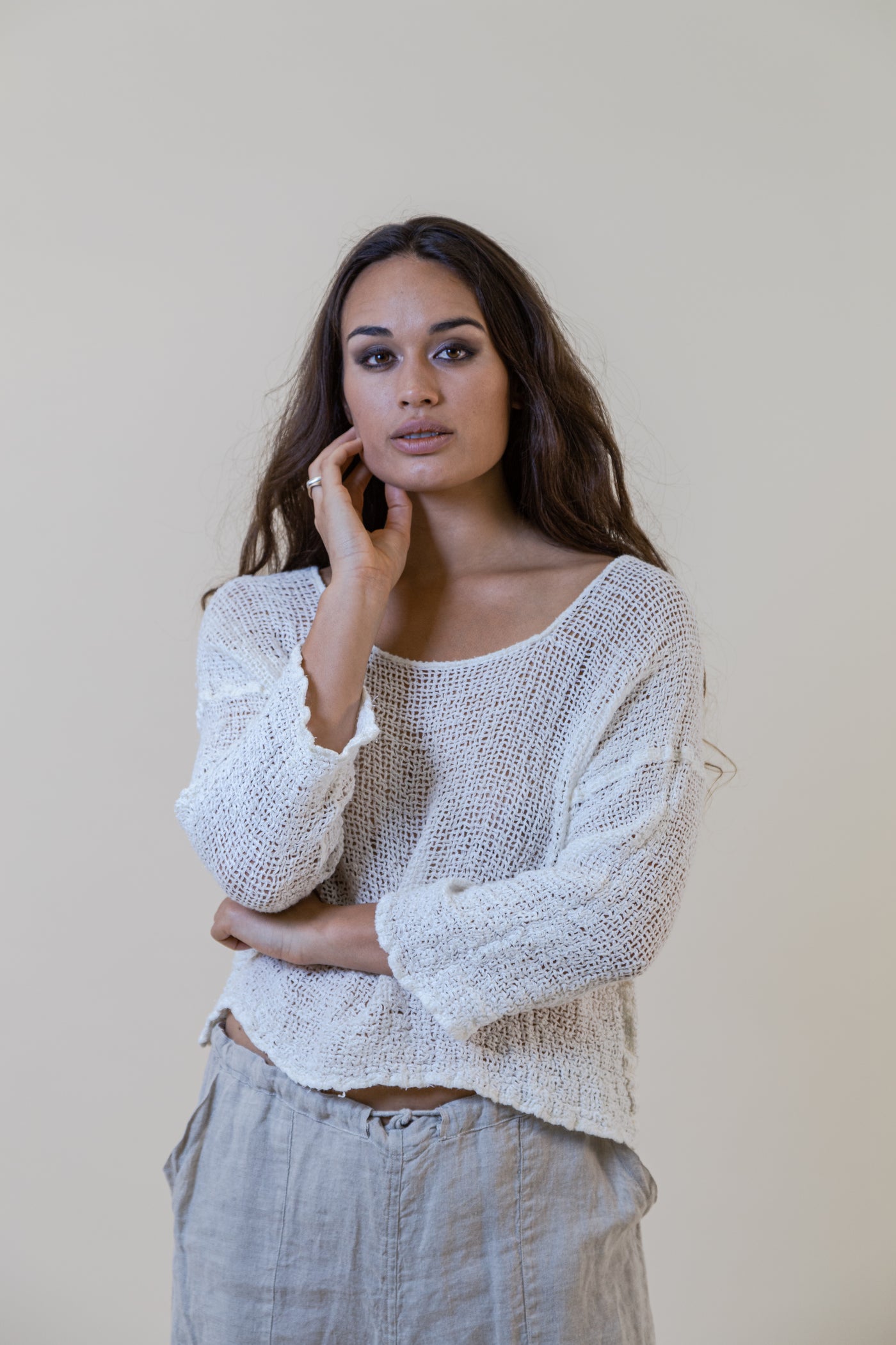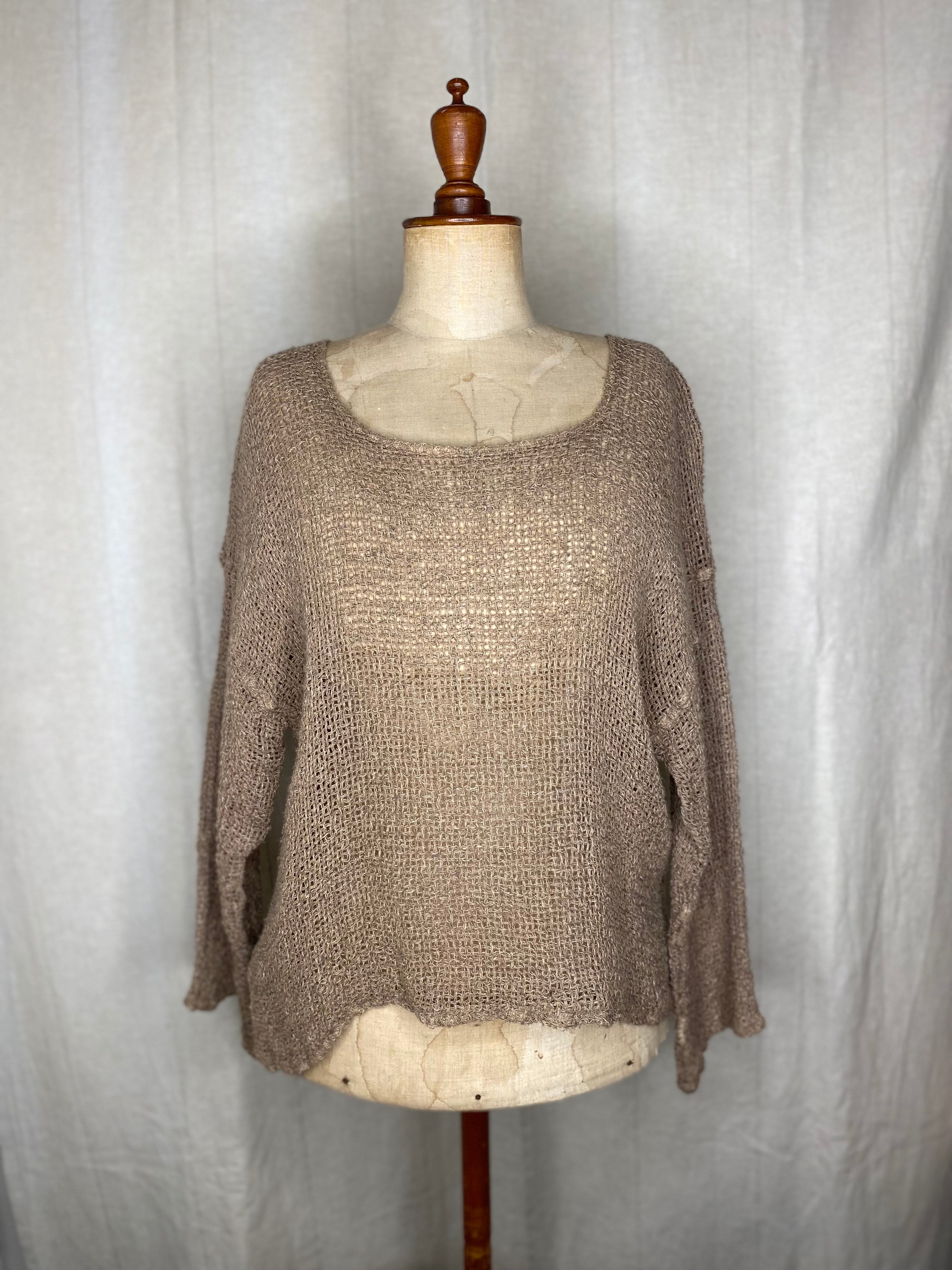 Made in Italy from the beautiful 100% Linen Campagna weave, the Maglia Bambusa is relaxed top, with scoop neckline and bracelet length sleeve.