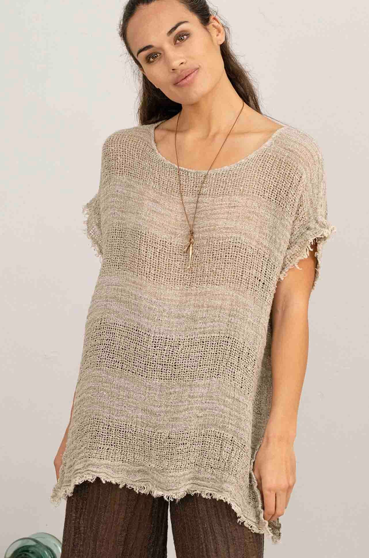 The Maglia Pneuma is a short sleeved tunic style, with textural stripes.