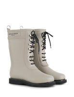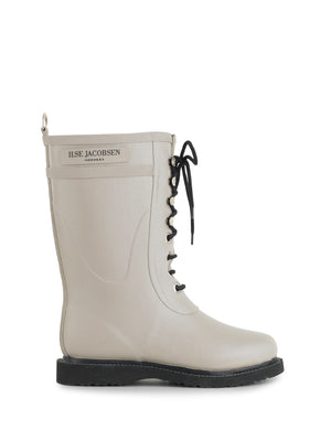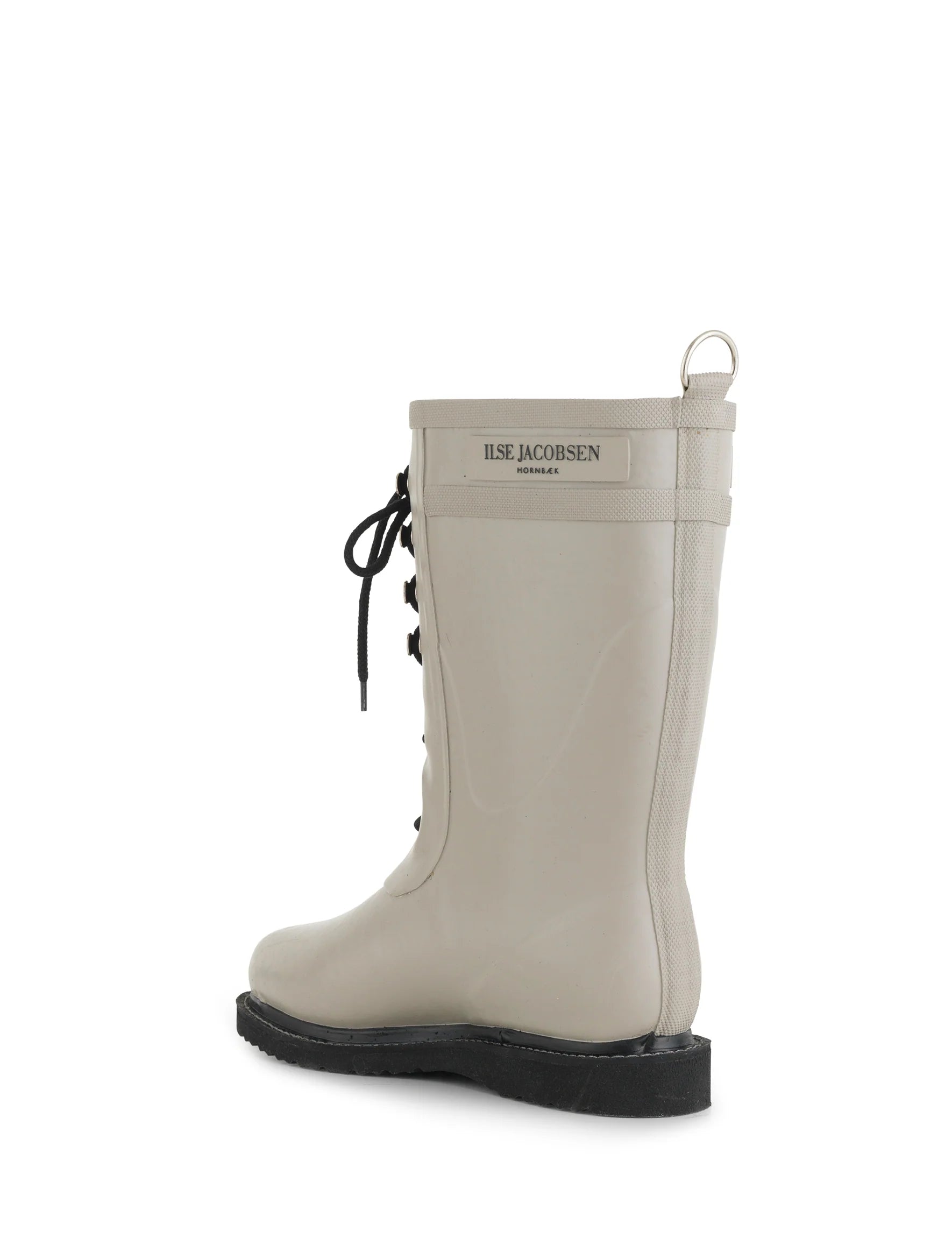 The iconic laced, handmade rubber boots by Ilse Jacobsen. These mid calf rain boots features a decorative D-ring at center back and logo on the shaft.
