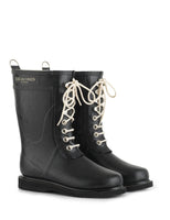 Mid Lace Up Rubber Boot - Black
