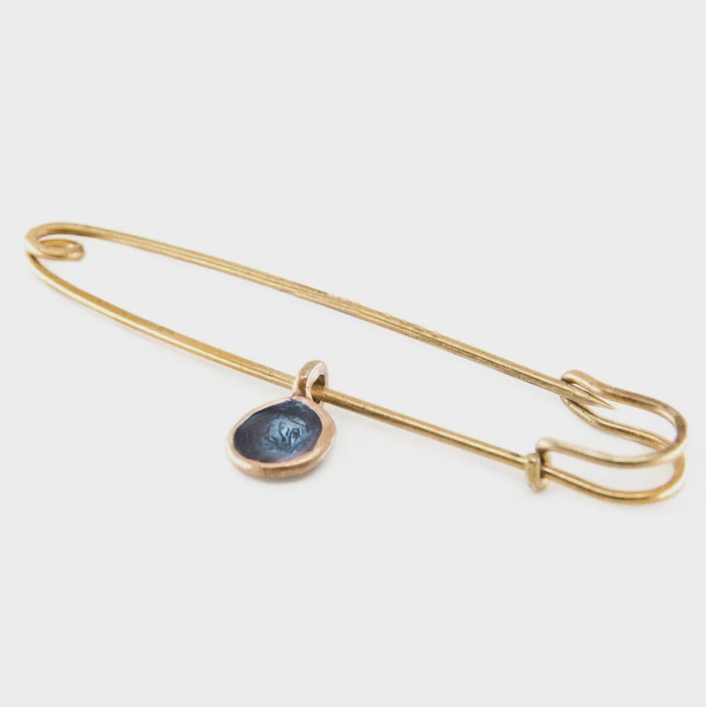 The classic 'Nonna' brooch is made from brass & features a bronze with enamel charm.