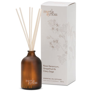 Without a doubt, our most popular Myrtle & Moss product. The classic botanical essential oil blends are available in frosted amber glass diffusers. They make for perfect gifts and scent your space gently and naturally.
