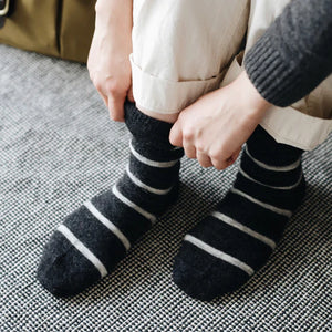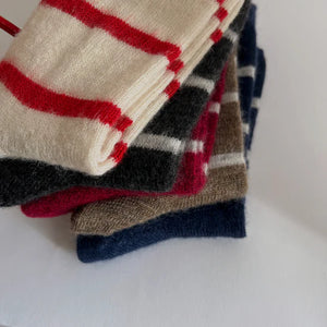 Baby mohair goat fibres are expertly woven with wool to create this ridiculously soft and warm style, available in simple, universally appealing hoop stripes