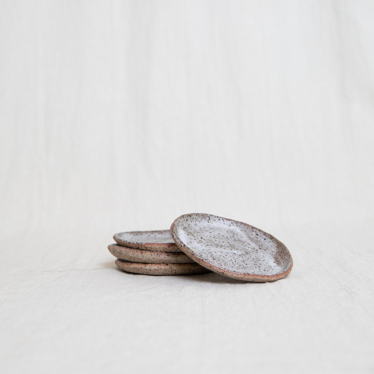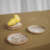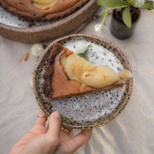 Perfect as a side plate for a slice of cake, or perhaps to display your beautiful jewels. or a candle on. Glazed in a beautiful moss green, patterned with a soft milky white where the glaze is thickest, the lovely part about this glaze is no two pieces will ever be exactly the same… But that’s the beauty of them.
