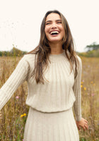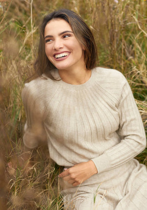 Float away with the Phoebe Crew. Beautifully made from breathable TENCEL™, merino and premium possum fibre, this designer crew neck is the perfect match for its mate the Ella Skirt. Featuring flattering rib detail, it's a statement piece you can style for any occasion.