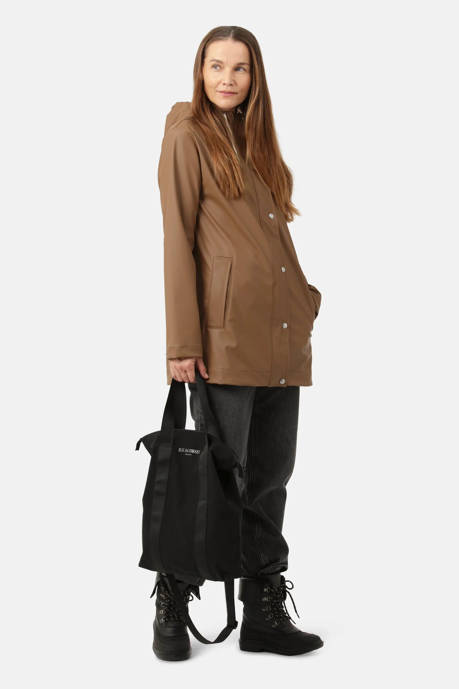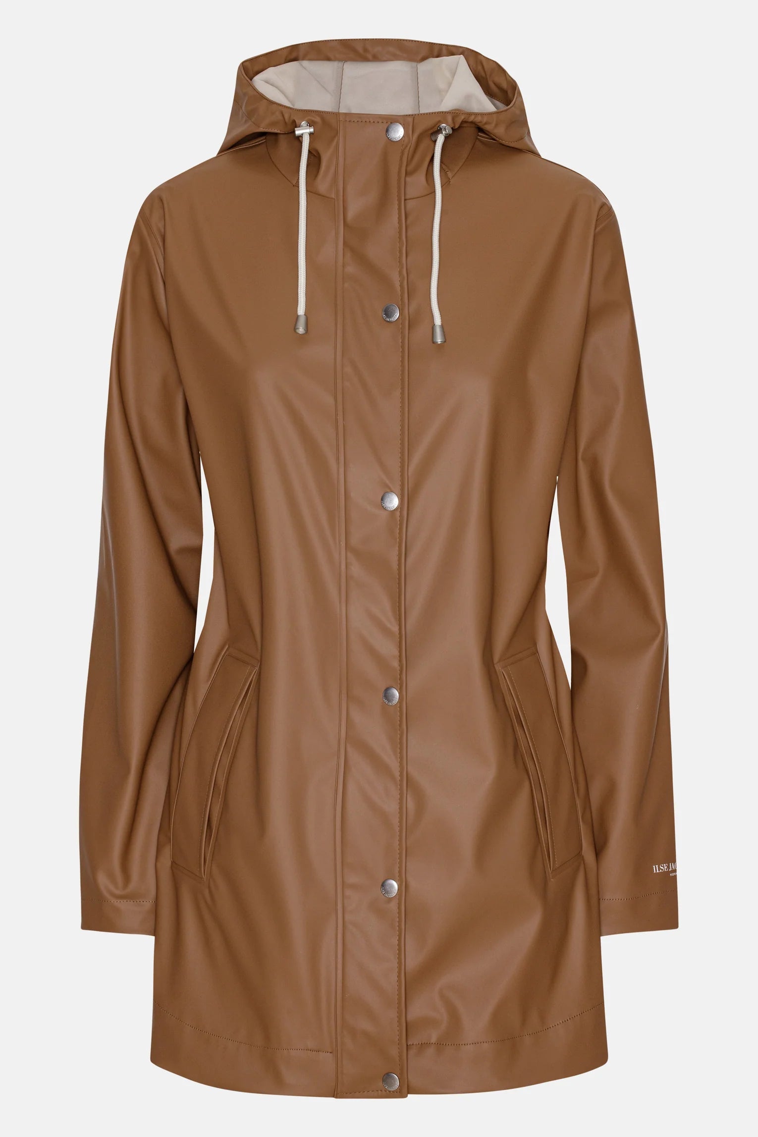 This new contemporary wardrobe staple is a straight-fit raincoat in durable lightweight-wearing rubberized PU coated waterproof fabric.