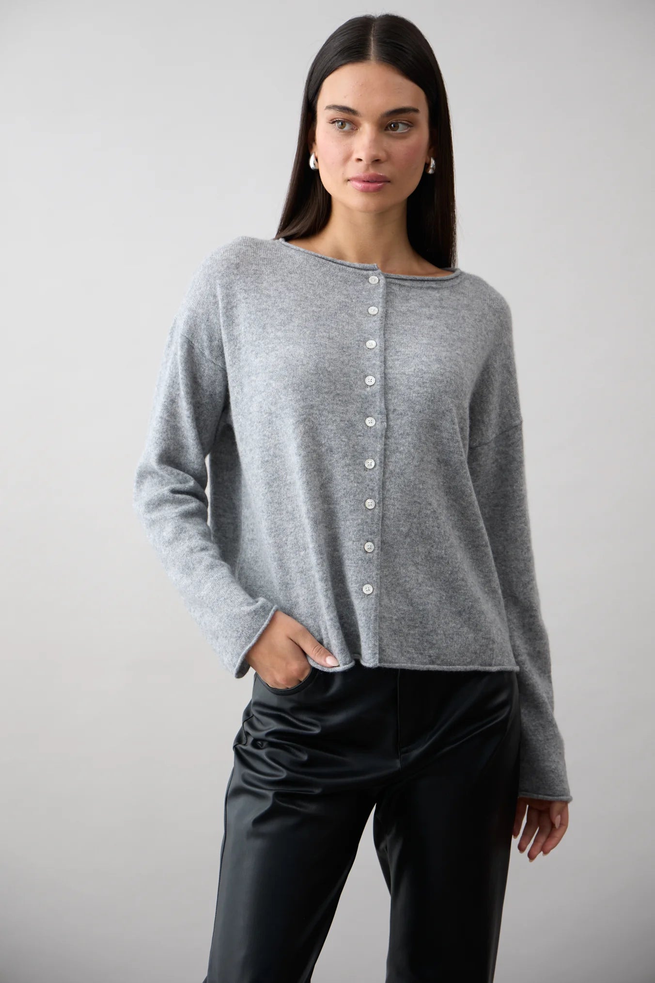 Made from 12g jersey knit, this relaxed fit cashmere cardigan can be worn either with the buttons to the front or back.