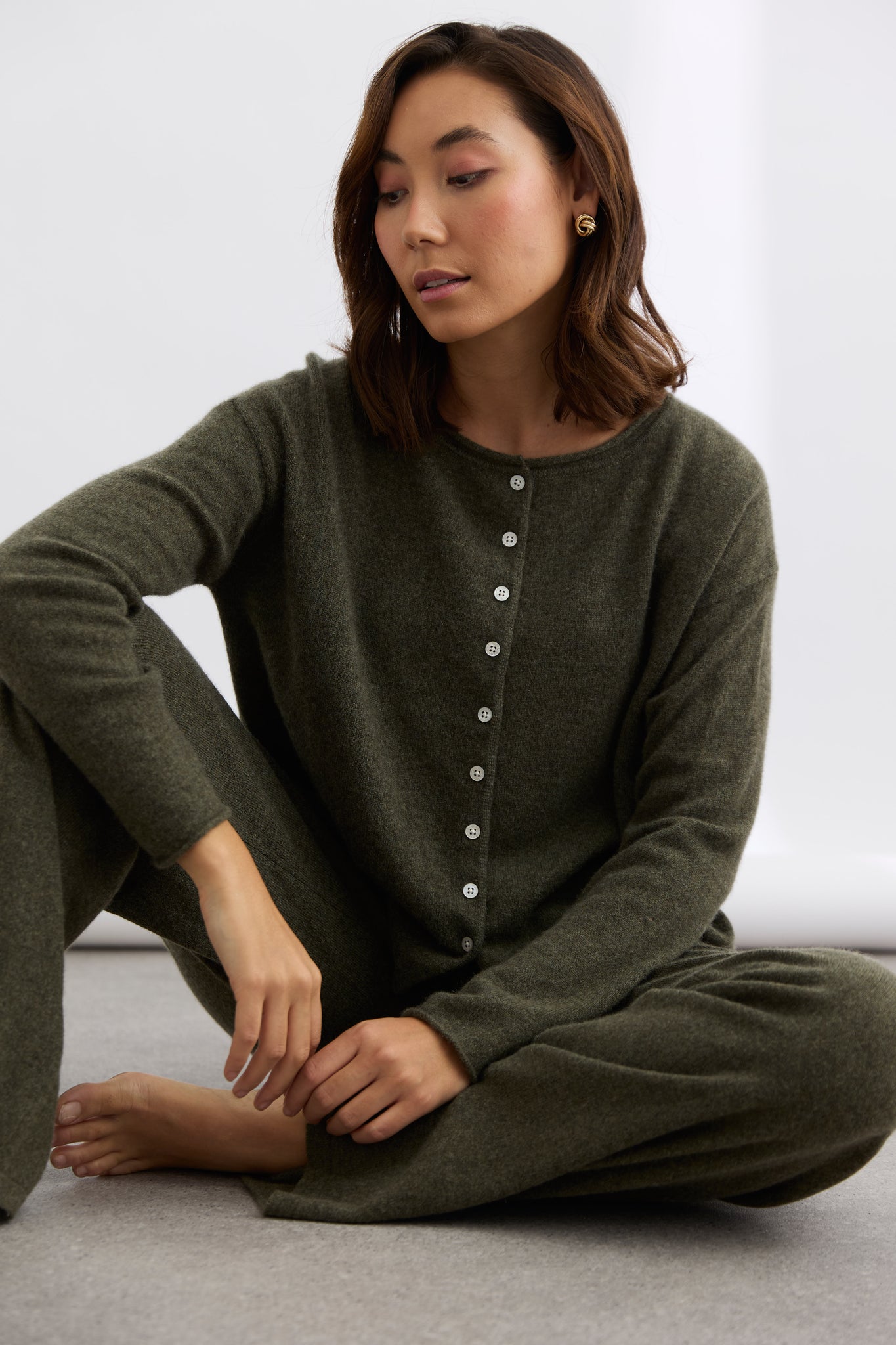 Made from 12g jersey knit, this relaxed fit cashmere cardigan can be worn either with the buttons to the front or back.
