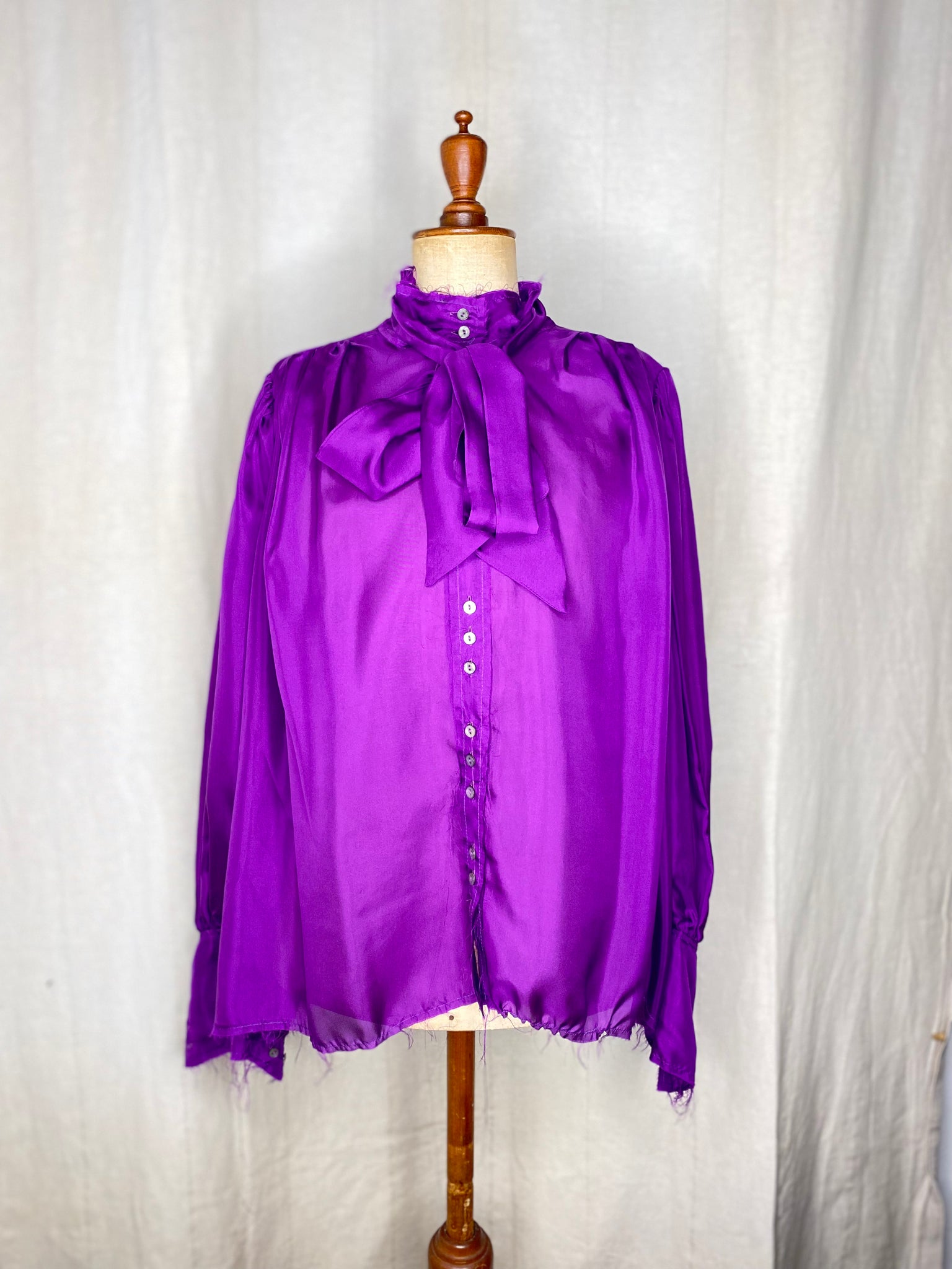 A stunning silk blouse, button through fastenings and optional pussy-cat bow tie.