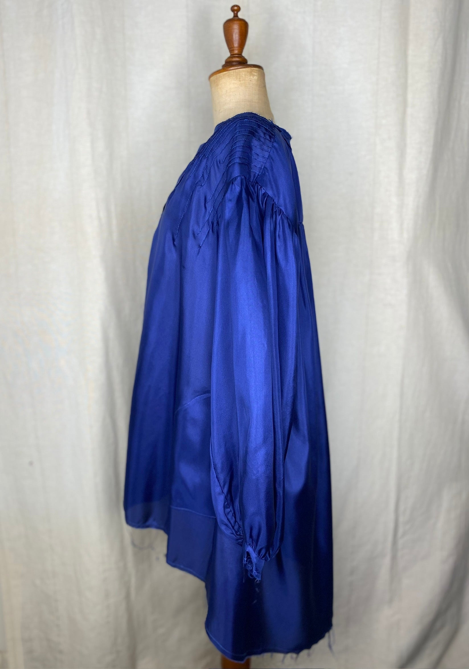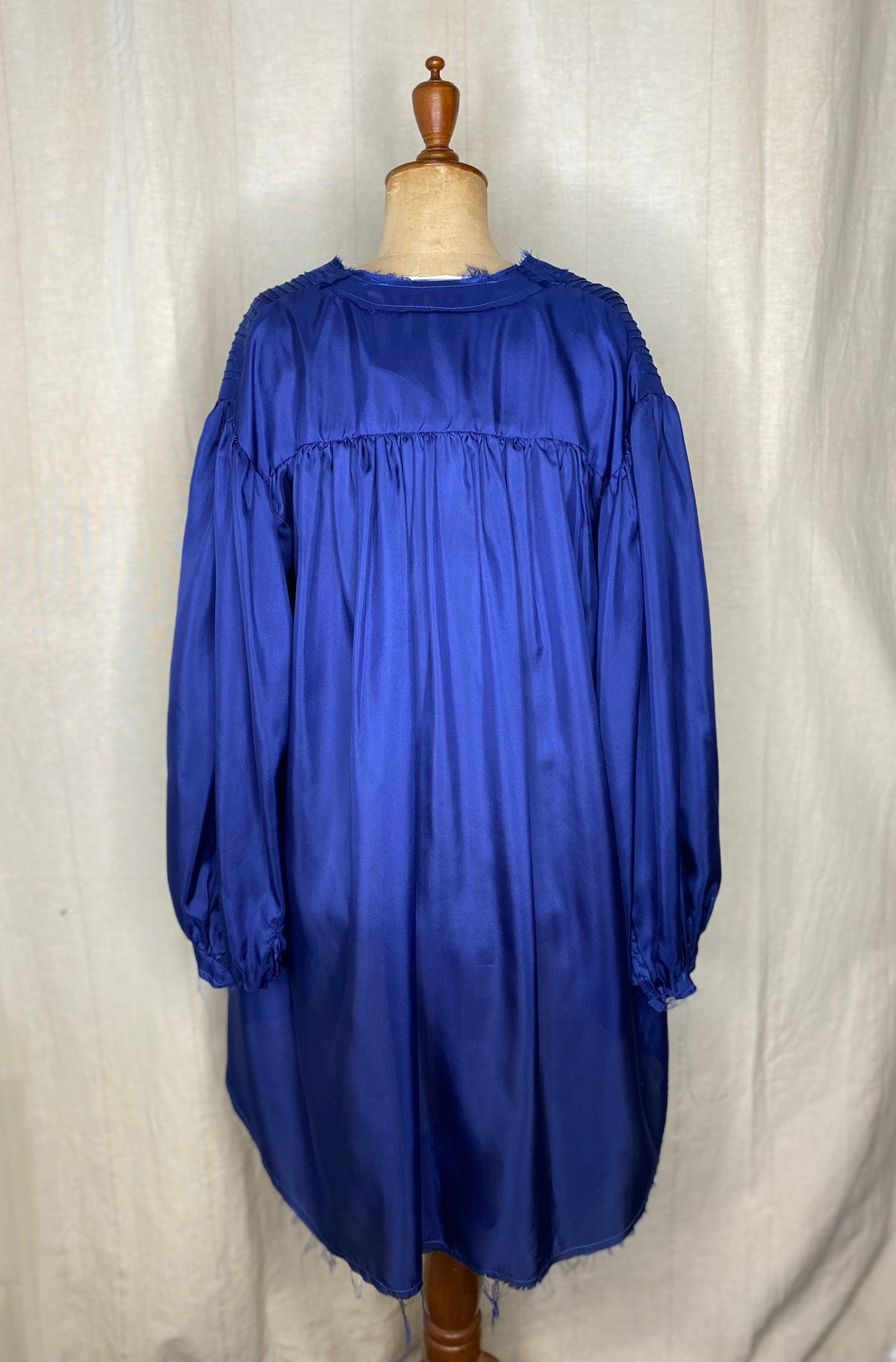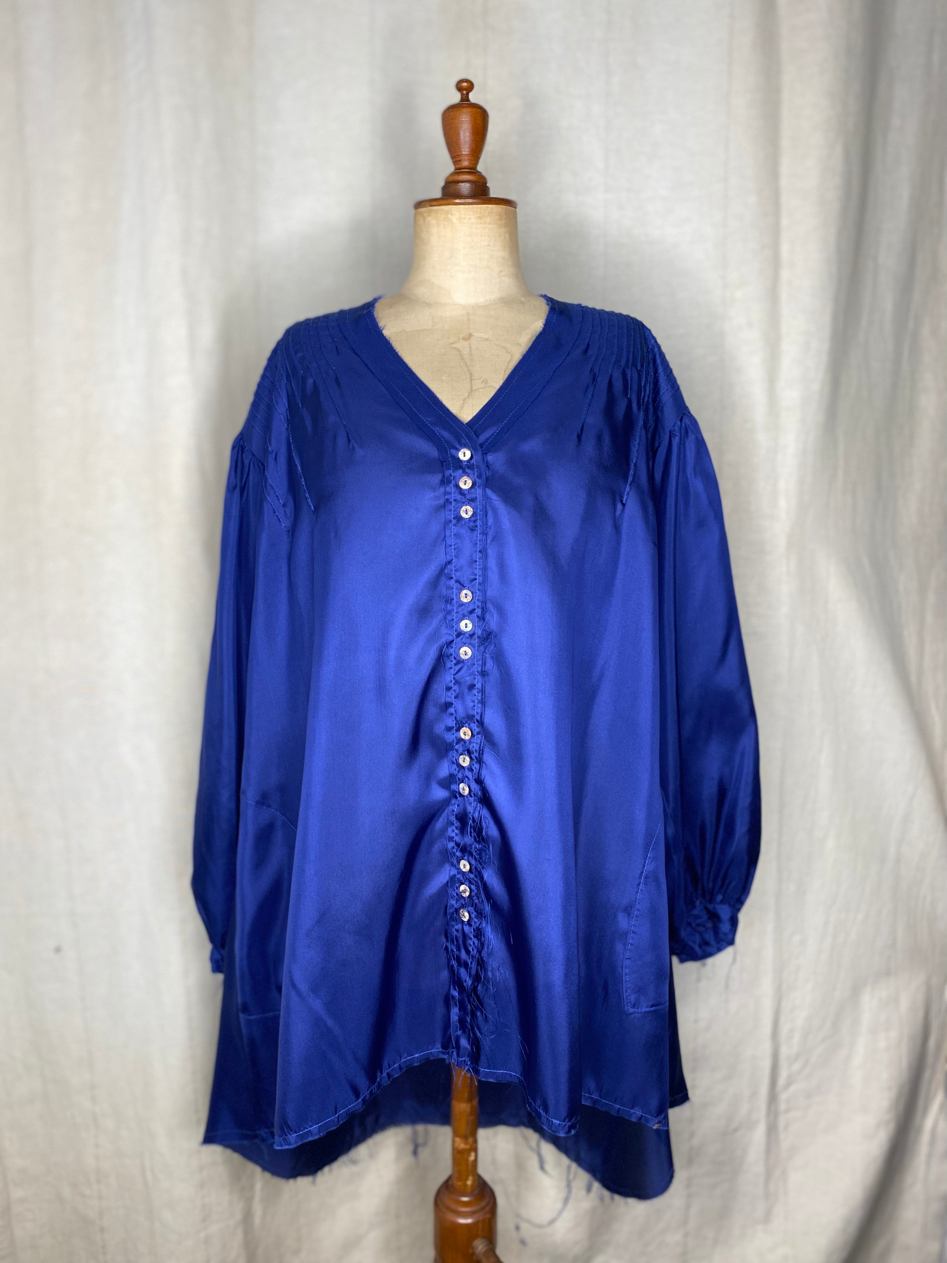 This pieces is a relaxed fit with a high low hemline, raw edge trims and functional pockets and French seams through out,