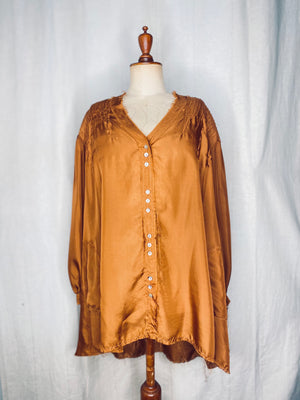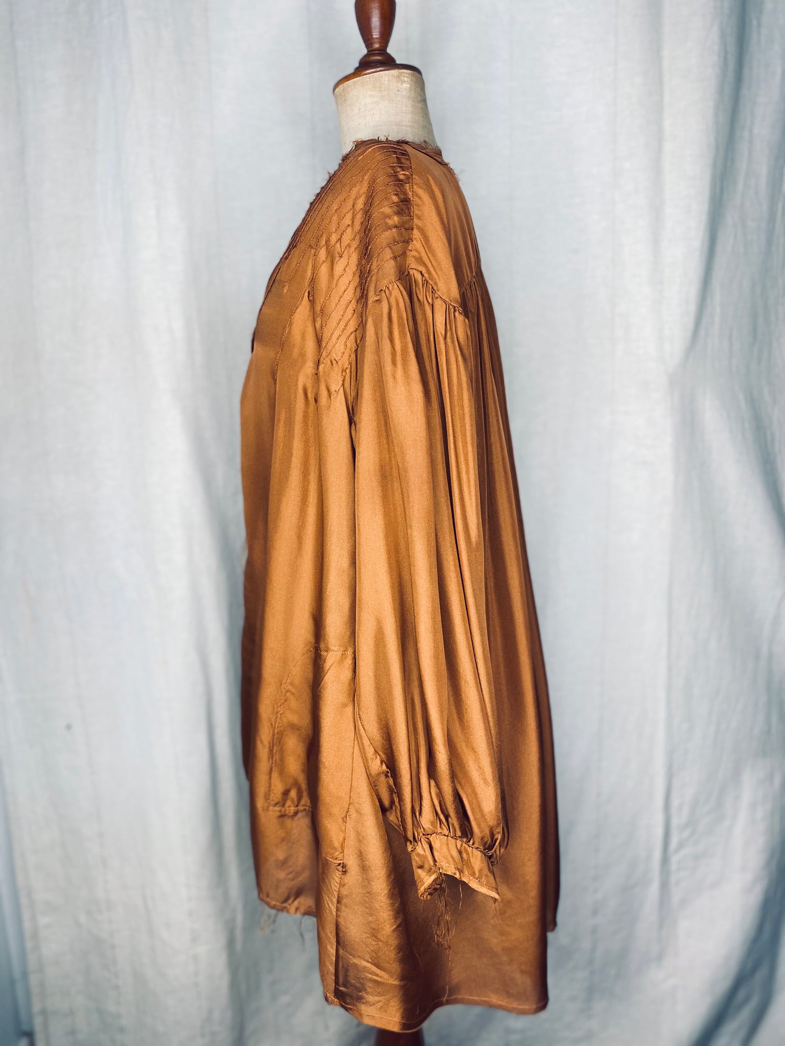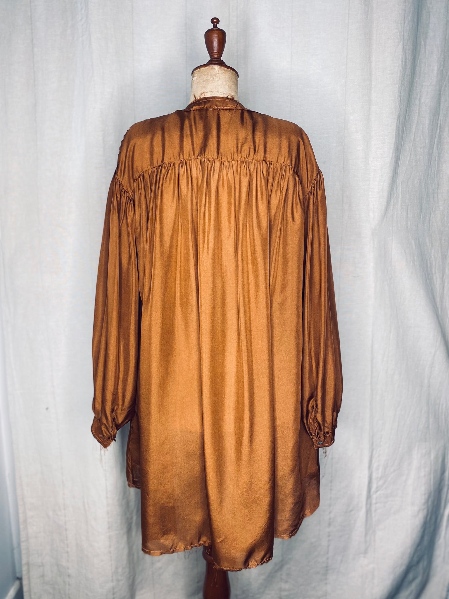 This pieces is a relaxed fit with a high low hemline, raw edge trims and functional pockets and French seams through out,