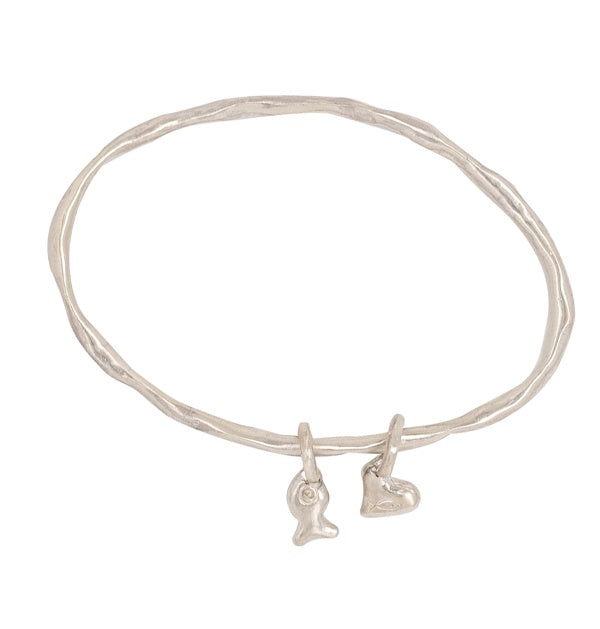 The Mediterraneo bracelet is made from handcast silver with a small heart & fish mini charm.