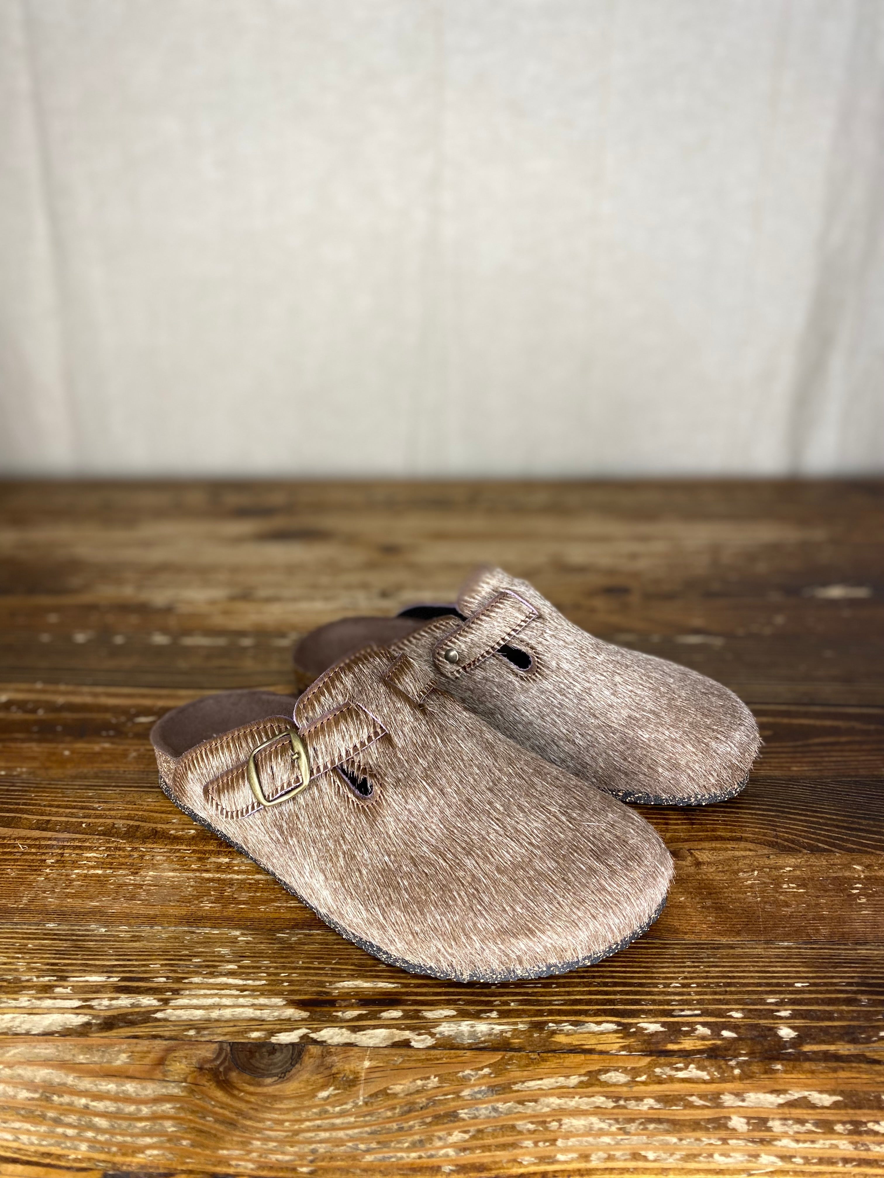 Made from a textured cowhide, the Strasbourg features a closed toe, front adjustable strap & bronze buckle detailing. As usual with our Bosabo pieces, these wonderful slides have been made to order, just for From Dust.