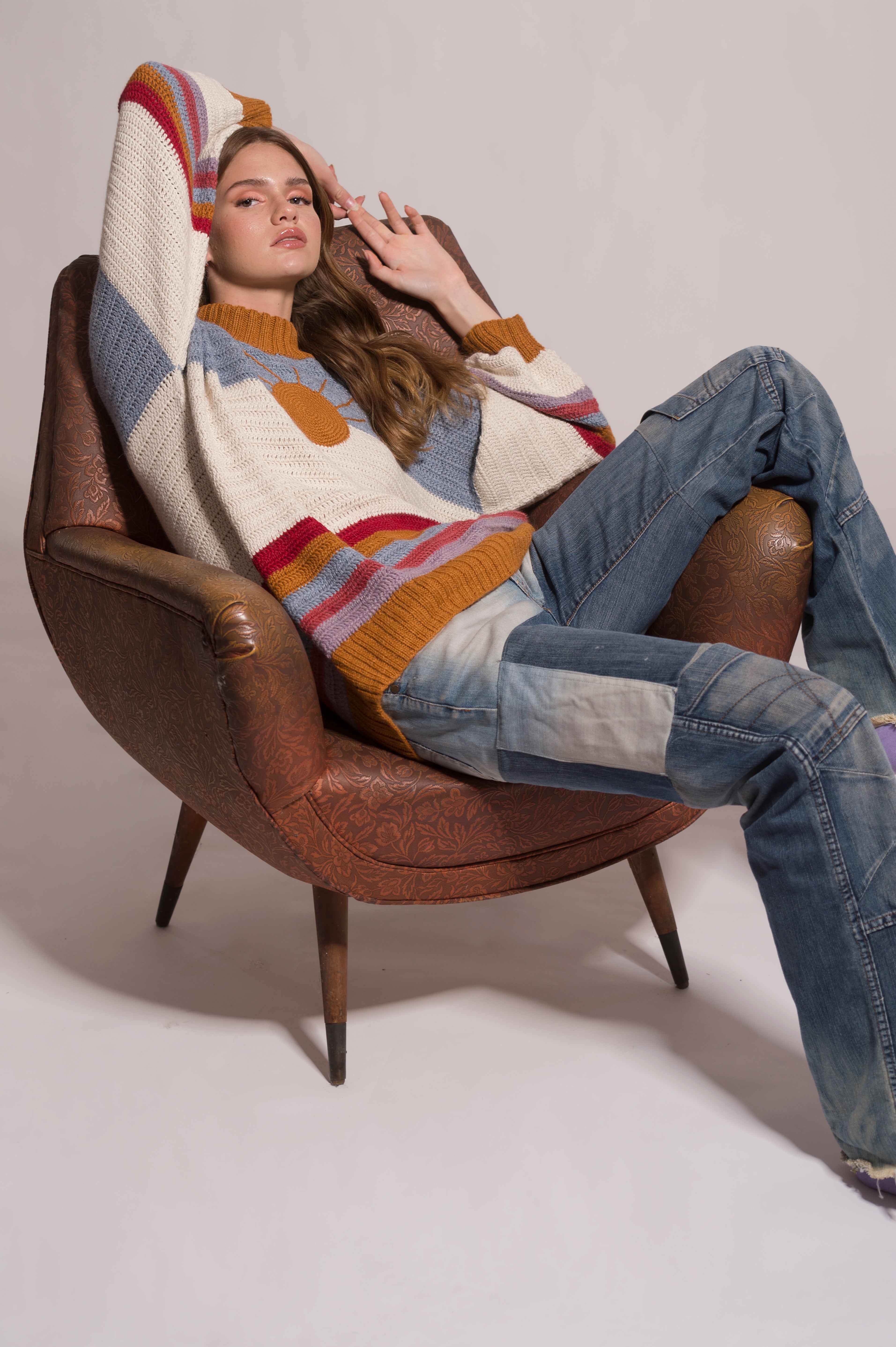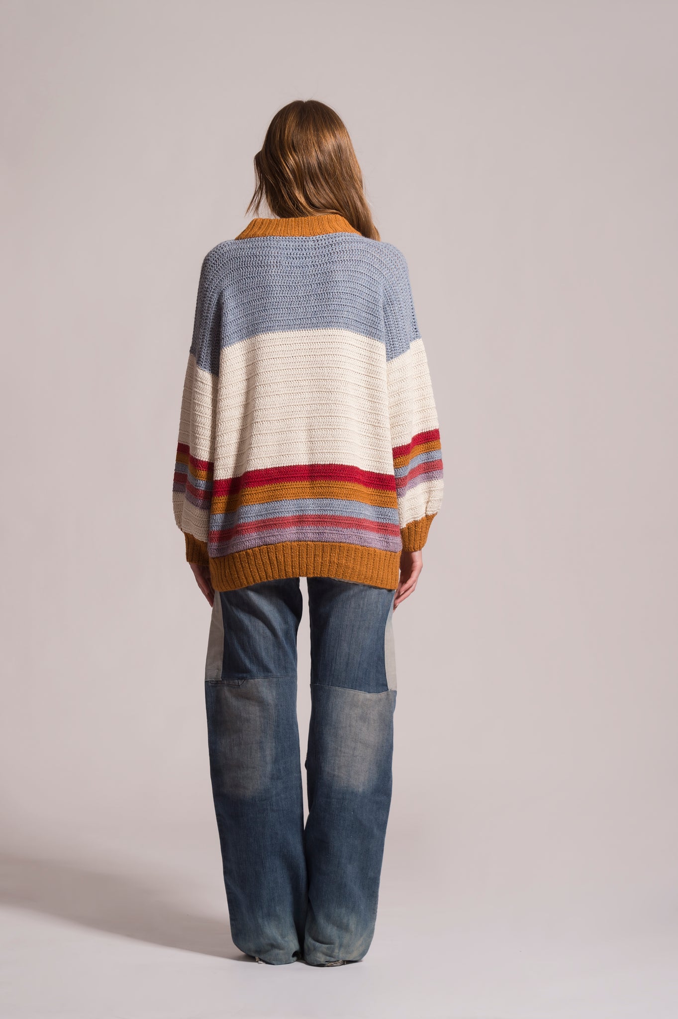 The Sunset sweater is a cosy hanknit, made from 100% Alpaca wool.