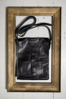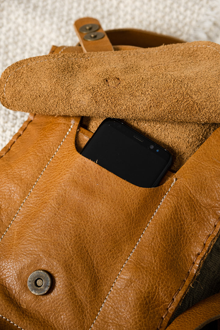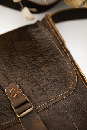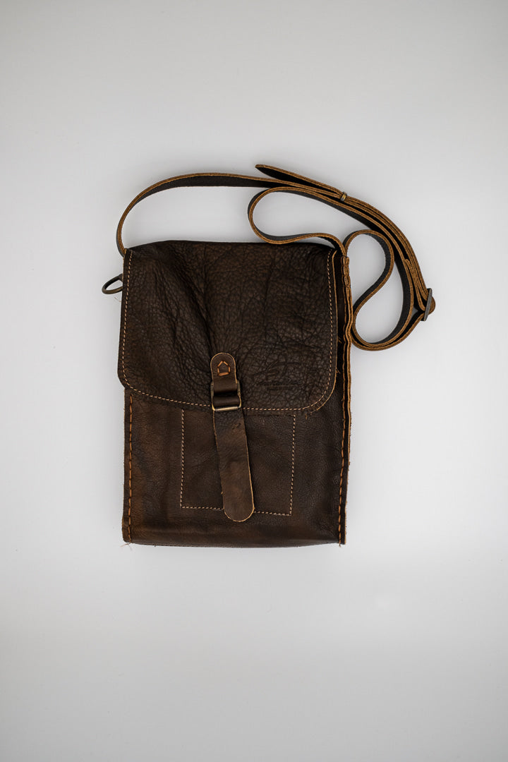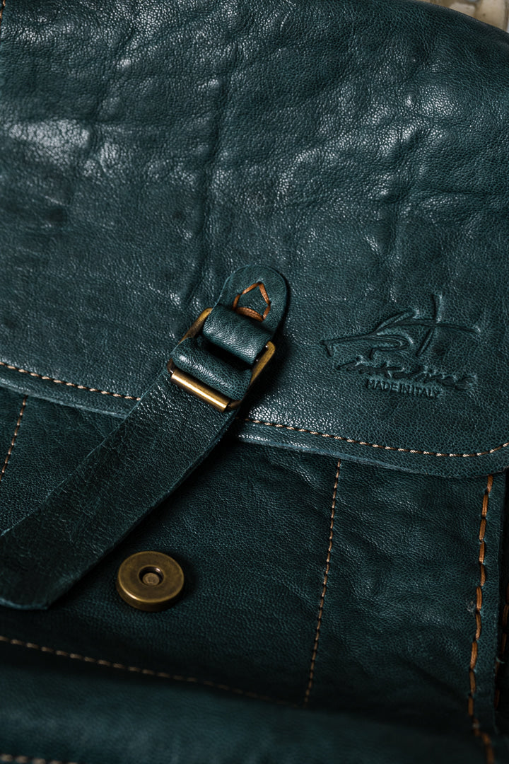 Leather side bag with magnetic bronze buckle and internal pockets. Style and functionality are joined together in this vertical side bag. It looks small ,but it’s capacious, full of compartments that can organize all your essential.