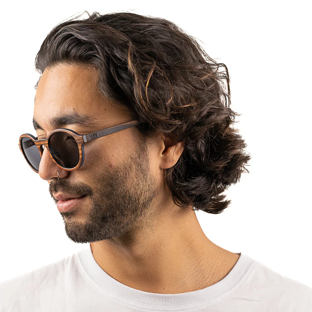 Crafted from oak wood with rounded wood frames and a curved bridge, the Wanderer is a standout unisex style that suits most face shapes and sizes. Fitted with UV400 polarised lenses and perfect for anywhere you may wander.